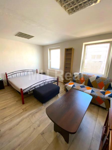 1 izbový byt - priestranná izba aj kuchyňa, kúpeľňa (sprchovací kút, umývadlo, priestor na práčku), WC.