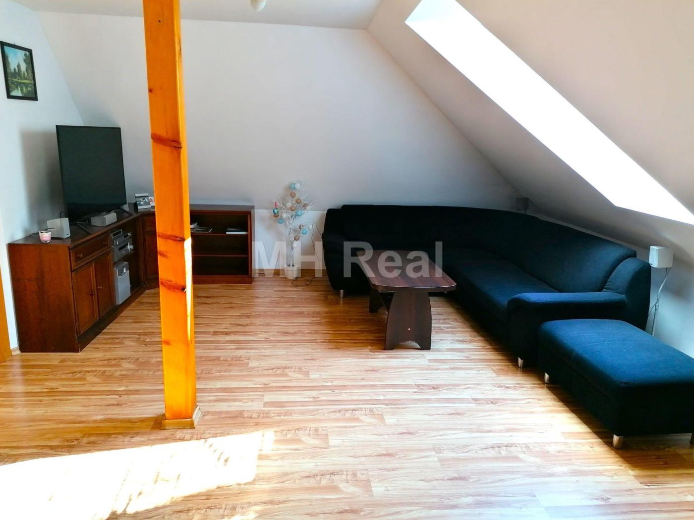 PODKROVIE: 2 izbový byt - obývacia izba prepojená s kuchyňou, izba, šatník, kúpeľňa (rohová vaňa, umývadlo, priestor na práčku), WC.