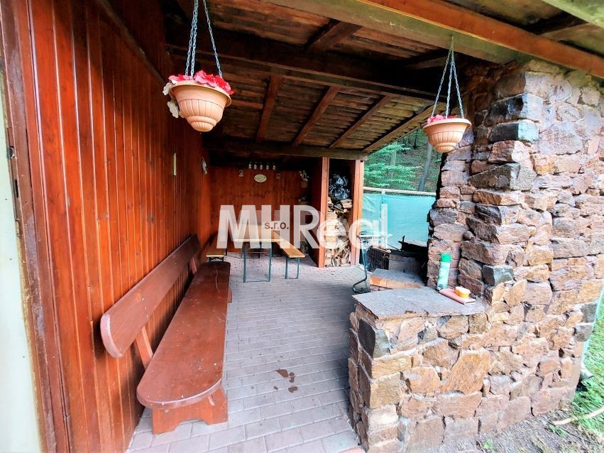 Stavebný materiál: chata - drevo, altánok (drevo-kameň). Strecha rovná, krytina plech.